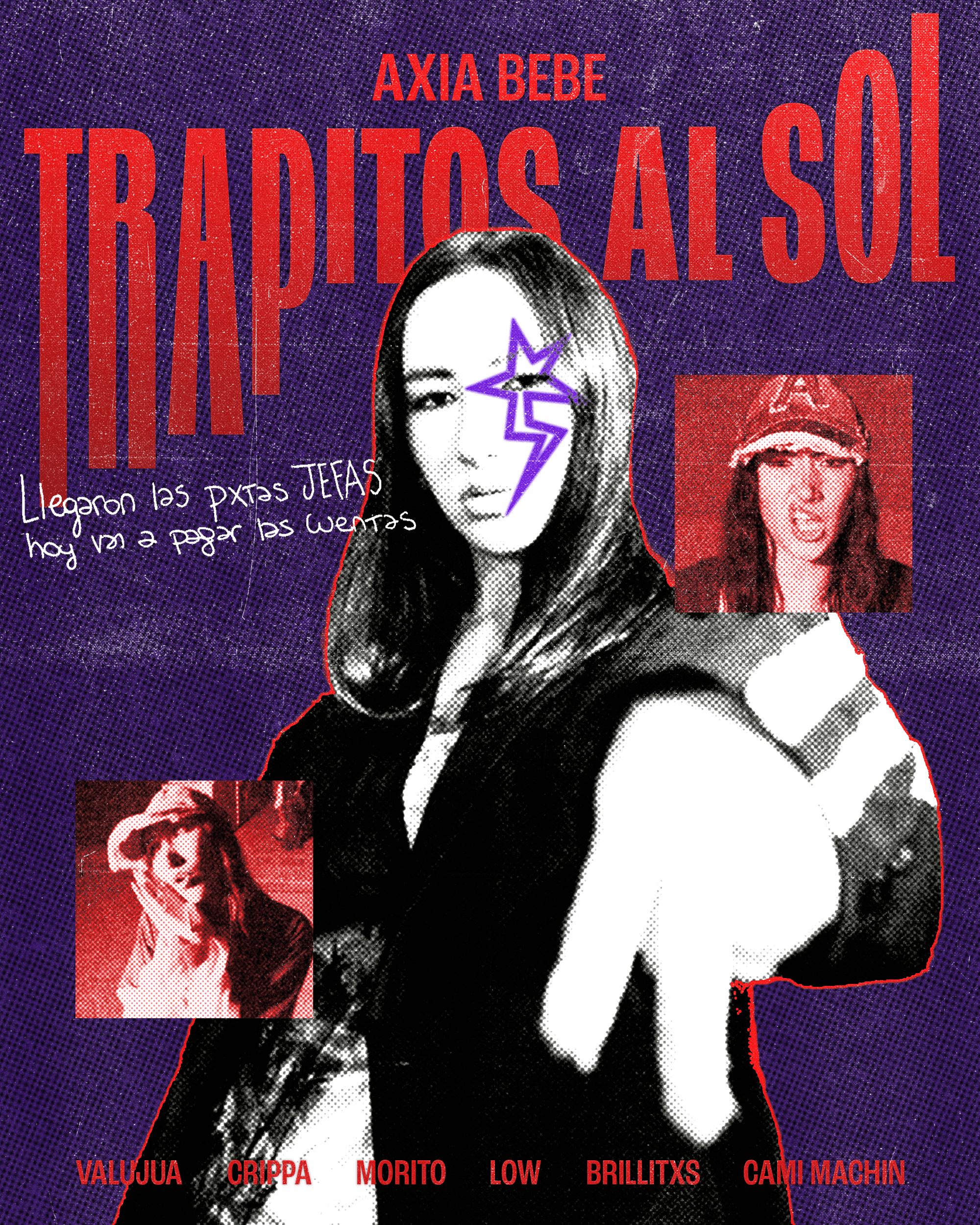 El PODER en la voz alzada por 7 mujeres. Sol se sentia vulnerable y sola hasta que mujeres la ayudaron a levantarse. Esta cancion habla de la union de las mujeres, ya no andan asumiendo un papel victimas, sino que usan todo lo que les sucedio para hacerse fuertes y pisar gigante en esta industria Hacerse valer y abrir camino para ellas y todas las otras artistas. Hablando sin miedo de las cosas que tuvieron que soportar siendo del genero femenino en este ambiente. Estas artistas mujeres que le dan la mano a AXIA BEBE en forma de apoyo son Valujua, Cami Machin, CRIPPA, MORITO, Brillitxs y Low.